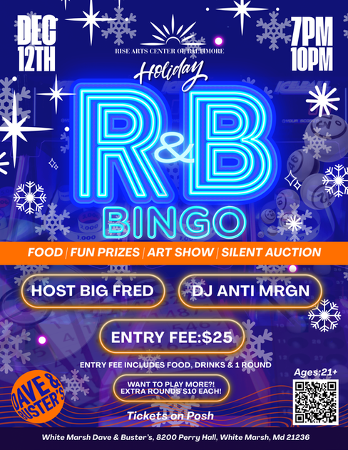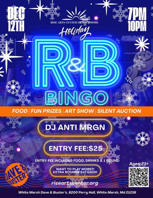 🎵Join us for a soulful night of music, art, and holiday cheer at our Holiday R&B Bingo fundraiser at the White Marsh Dave & Buster’s from 7-10pm!❄️